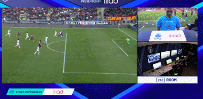 第52分钟,弗洛伦肖禁区内倒地,主裁观看VAR后点球取消,切利克被罚下