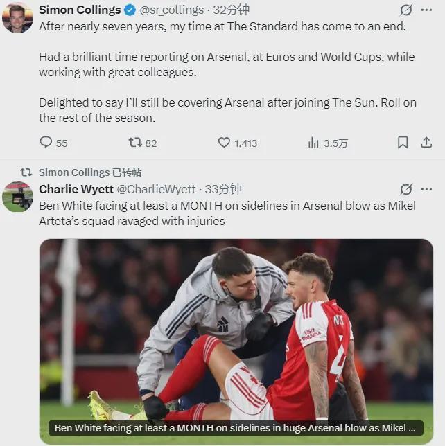伦敦晚旗报阿森纳方面记者SC发推确认,他已经从晚旗报跳槽到了太阳报,并且未来仍将报道阿森纳的新闻。