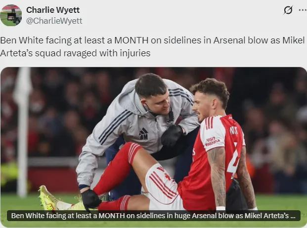 记者:本怀特将因伤至少缺阵1个月!波媒:枪手竞购波兰边路神童