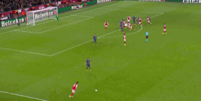 第20分钟,萨卡右路插上挑射打门,奥布拉克出击挡出皮球