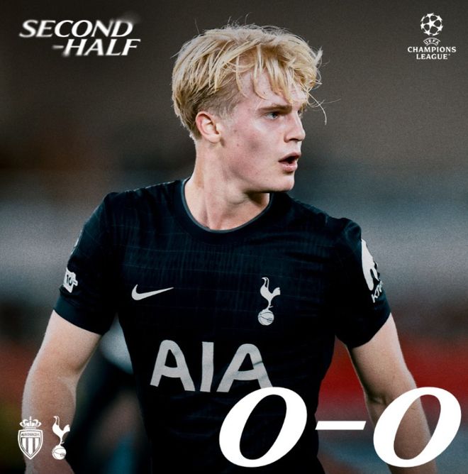 2025年10月23日 闷平!热刺0-0摩纳哥欧冠两轮不胜 巴洛贡失单刀维卡里奥献神扑