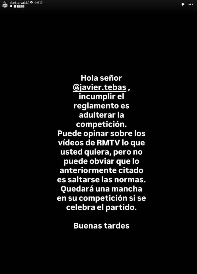 卡瓦哈尔回应特瓦斯:可以评论皇马TV,但海外赛就是违反规定